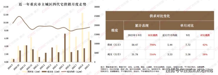 当楼市进入“卷产品力”的阶段,四代宅热度持续升级——克而瑞数据显示,当前重庆中心城区在售或已规划四代宅产品的项目,月均供应量已稳定在5万方以上,且供应规模随市场需求不断扩大。在成交端。由于产品力形成了对传统住宅的“降维打击”,四代宅的去化远超传统住宅,始终稳定在七成以上的高位。仅在刚过去的9月,四代住宅的成交量上涨48%,成交占比提升至12%。其热度持续上涨,原因在于精准抓住了改善型客户对“好房子”的迫切需求。