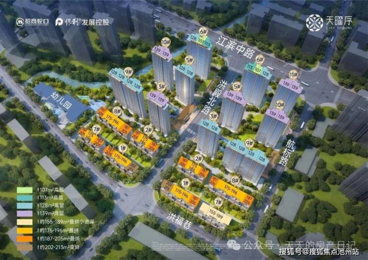 高层建筑面积为110-125-128-139㎡;叠墅建筑面积为 144-174㎡