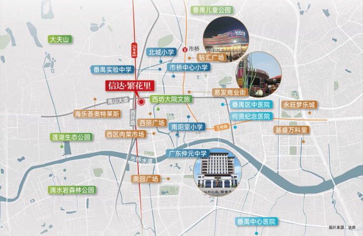 项目地段优越,位处番禺城芯,坐拥市桥成熟生活圈,近享易发商业街、钻汇广场、奥园广场等三大商圈。更有广州医科大学附属番禺中心医院、番禺中医院,何贤纪念医院三所三甲医院,为业主的健康保驾护航。周边配套齐全无需等待,繁华尽拥,舒适生活即时可享。