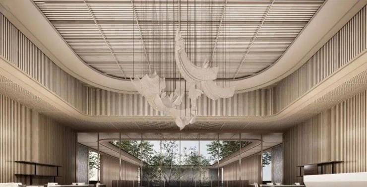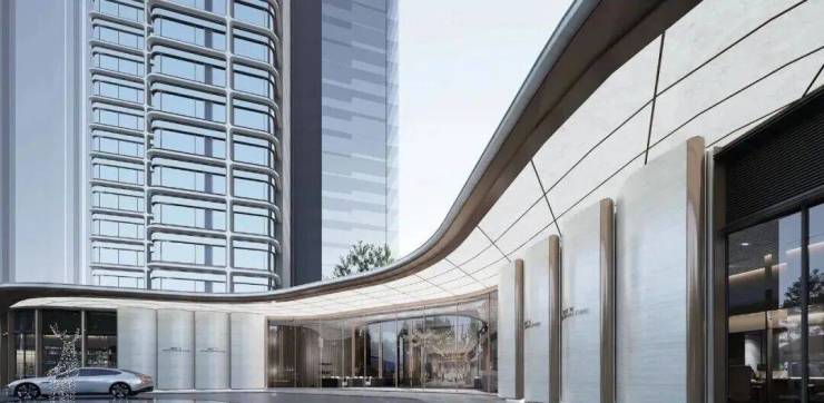 长达约120米弧形主入口界面,城市级封面门庭,集萃名贵奢石臻造,铺陈都会风华,礼遇当代门庭,呈现繁华CBD里的曼妙意境。