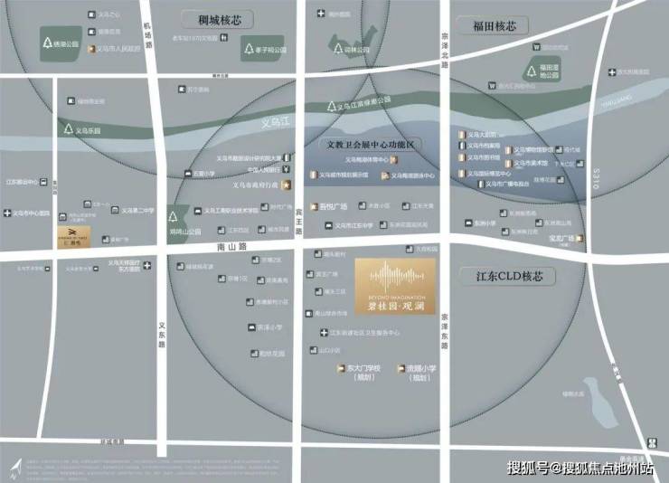 直线3km范围内有35个幼儿园;8个小学,如义乌市江东第一小学、义乌市青口小学、东洲小学、宗泽小学、五爱小学等;3个中学:义乌市江东中学、义乌市第二中学、义乌市树人教育集团树德中学。
