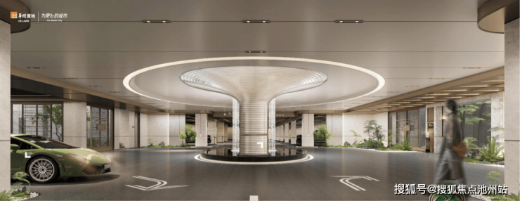 ①生机之环: 当车轮驶过生机之环的中央车站,庭院的悬瀑水景,与阳光清风透过穹顶倾泻而下。推开车门,通透敞亮的归家甬道与户外无界联通,只需几步,即可从车库步入自然庭院。