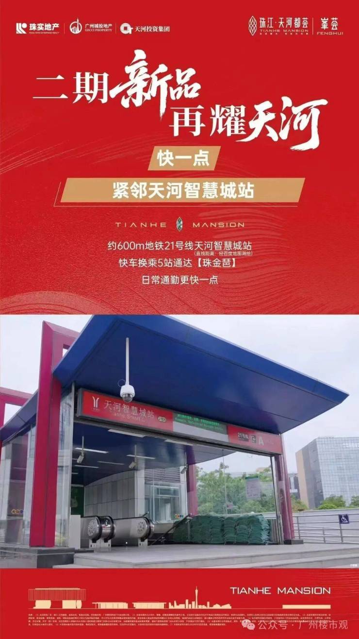 项目距离地铁21号线天河智慧城站约600米,4站可达金融城、5站至珠江新城。未来广佛东环线智慧城站通车后,还可以直通白云机场及广州南站。