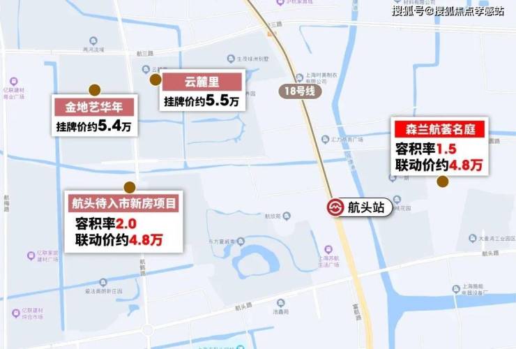 再对比新房,航头站西面,距离站点直线超过1公里的新房联动价也是约4.8万/㎡,但该项目的容积率是2.0。
