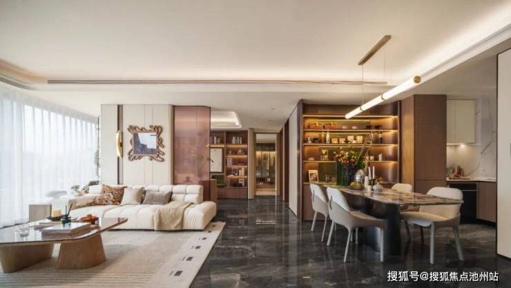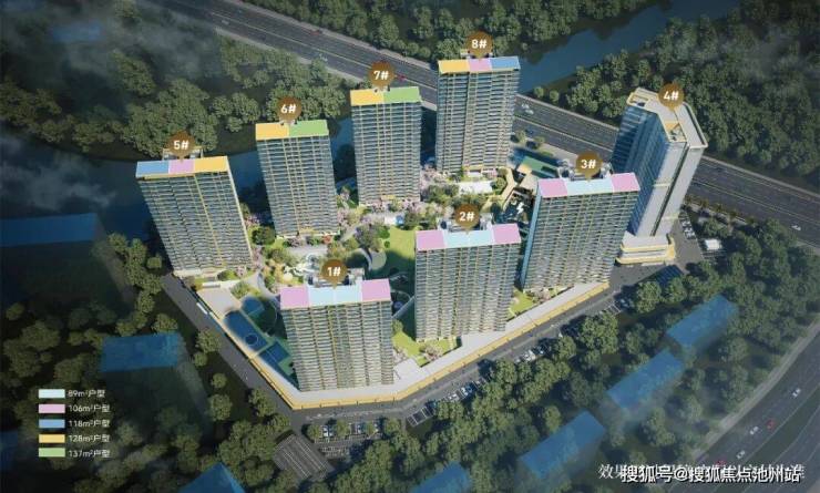 汲取同步世界的“Super Flat”前沿审美理念,超大窗墙比设计,营造“全⾯屏光幕”质感,呈现轻盈通透的视觉格局,同时选用香槟色、高级灰色调,营造艺术地标级建筑,筑就城市高颜值封面作品。