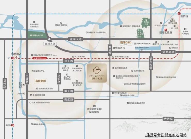 占位瓯海CBD与高铁新城交汇处,依托高铁新城发展的磅礴势能,TOD 城市旗舰综合体、⾼铁新城城市会客厅、新兴产业先导区等千亿重金配套加持,率先优享板块腾飞所带来的新中芯价值,实现生活的丰盈与价值的上涨。