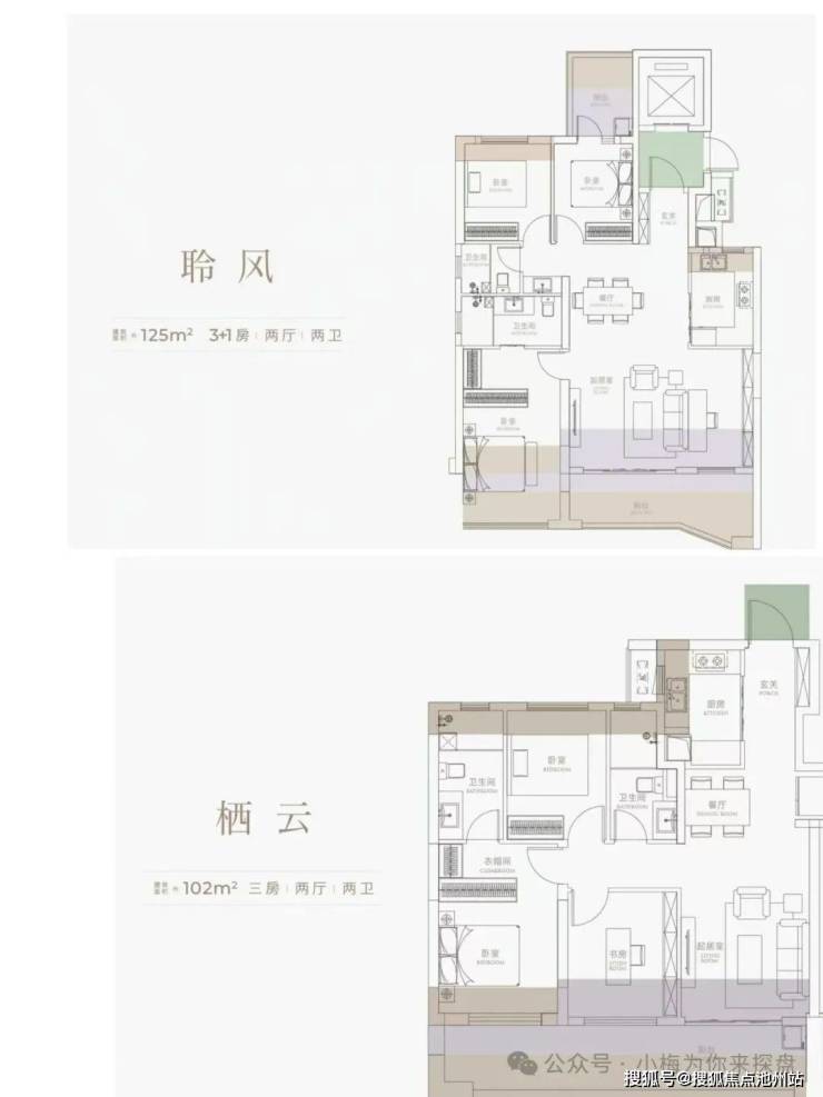 硚口城建文澜序项目总共包含6栋住宅,1-5号楼总高47层,6号楼总高33层。小梅打听到首推户型包含建面约102、125平两个面积段,项目首开户型都能做到专梯专户效果,KFS宣传首开户型使用率超100%,来看看具体户型图