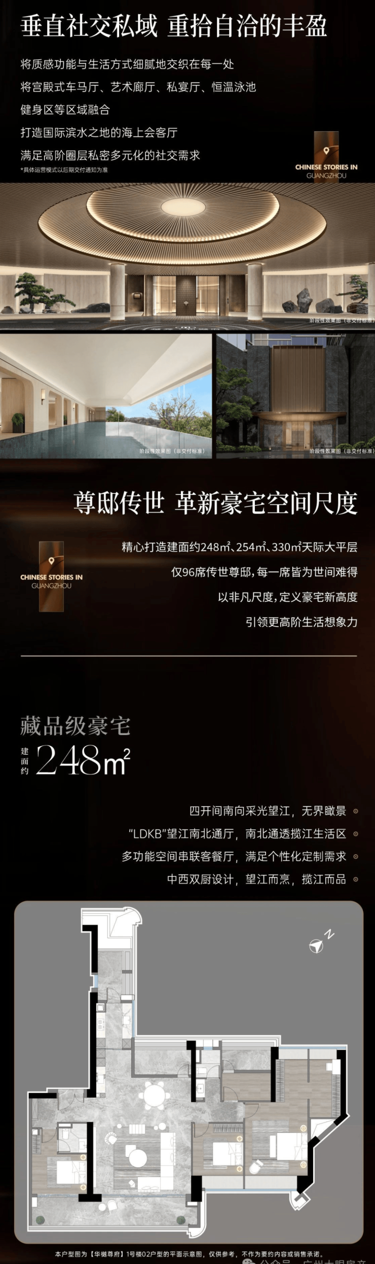 区域发展潜力大:位于珠金琶构成的湾区核心金三角上,琶洲 CBD 作为人工智能与数字经济试验区,发展前景广阔,项目具备高成长性,符合豪宅客户对资产增值的需求。