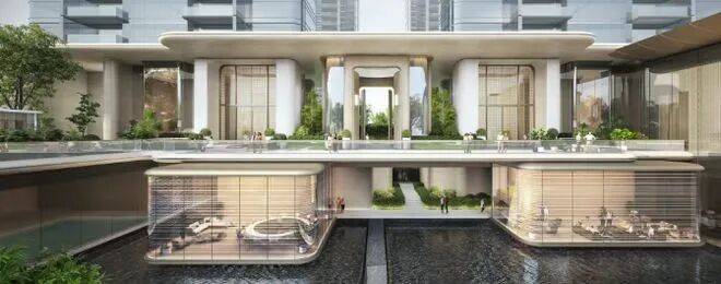 保利琶洲南项目的外立面采用大面积玻璃幕墙与铝板组合的设计,赋予建筑现代感和豪华感。园林景观按照保利高标准进行打造,营造出高端精致的居住氛围。社区内还设有健身房、游泳池等休闲设施,为居民提供了多样化的娱乐选择。此外,项目采用纯板楼结构,实现专梯专户,确保住户享有更高的私密性和舒适度。