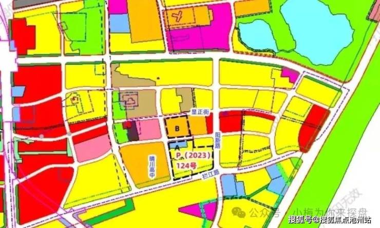 该地块即为P(2023)124号地块,其项目土地面积33241㎡,住宅、教育、公园绿地用地,建筑面积75114㎡。地块要求B地块内控制一处小学,落实为18班,建筑规模6714㎡。项目总投资预计15亿元,工期约2年,预计于2026年年底完工。该项目地块分为A、B两个小地块,A地块规划5栋为二类居住用地总层高在(31-33层)、公园绿地,B地块规划用地性质为中小学用地