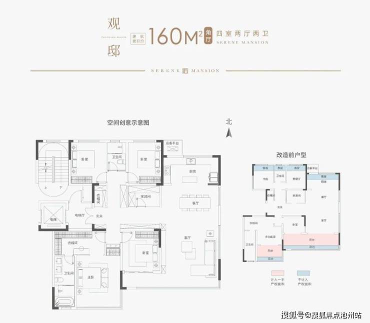 纯改善项目,最小面积127四房起步,户型得房率均在100%以上,主力面积段为143的四房。顶层结合坡屋顶和户内挑空打造复试产品,顶复面积段160-240。