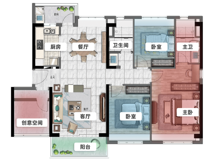 最吸引眼球的,要数双阳台的配置,南北通透,阳光入户,便是如此简单。