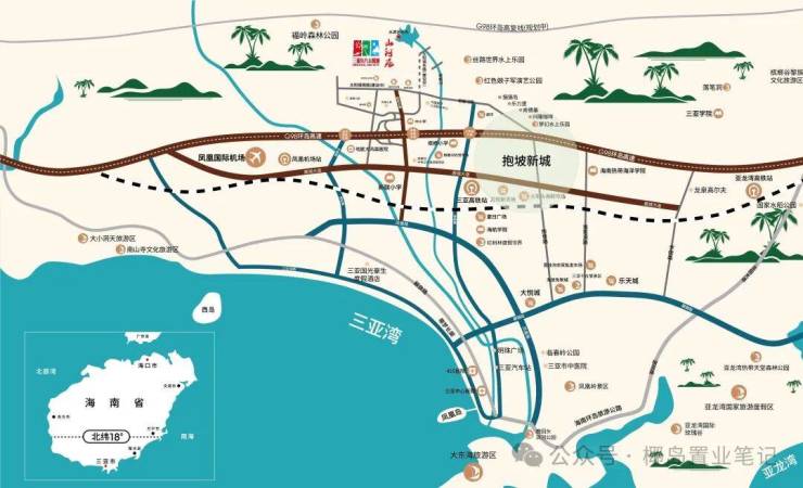 与三亚梦幻水上乐园,鸿森娘子军大型文化演艺公寓、槟榔河文化旅游度假区隔河对望;距离三亚哈尔滨医科大学鸿森医院仅2.5公里,开车5分钟直达;周边商圈规划涵盖美食购物中心、度假酒店、物流中心、金融中心、科研机构、文化广场、幼儿园、森林公园、滨江公园等多元住假配套。