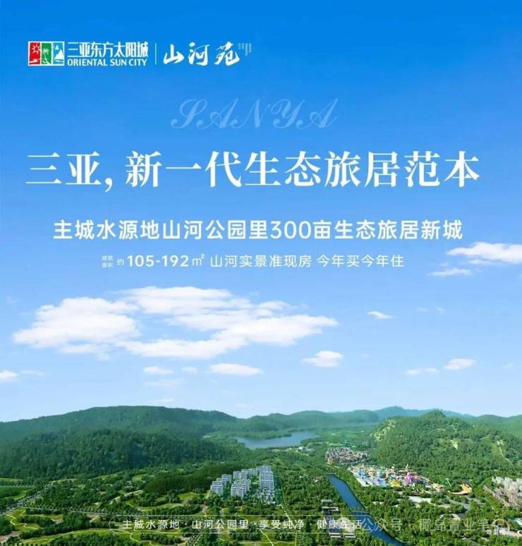 三亚东方太阳城·山河苑项目,西山顶公园,东拥三亚河(槟榔河),近享北源池水库、荔枝岭生态景观,面朝亚主城区、三亚湾等,以山河为靠,以繁华为景,打造天赋上境栖居地。