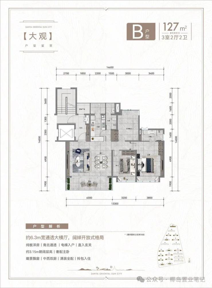 ✅ 约6.3m宽通透大横厅,约3.15m层高全明通透,时刻与阳光清风相伴