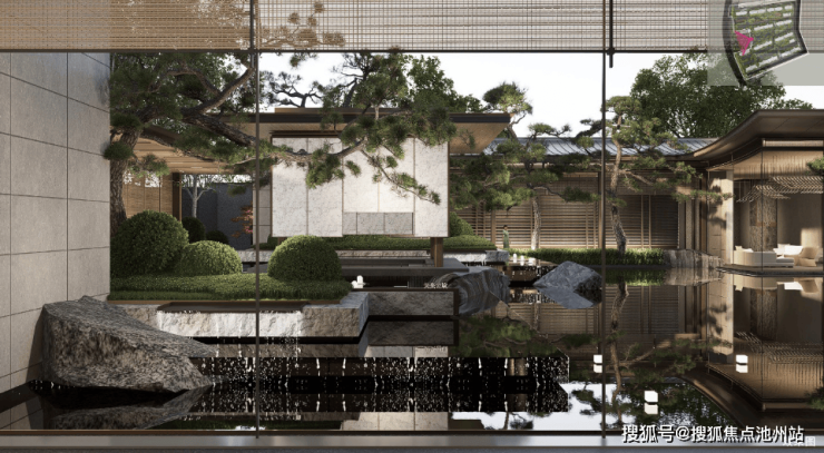 三进礼序归家动线,重塑东方门第仪制。一进“宋仪门堂”,以阔境门头与雕花格栅重现宋代官邸威仪;二进“隐逸庭院”,借叠石理水与游廊观景勾勒宋画水墨意境;三进“美学生活馆”,以宋式雅集打造美学沉浸场域,复兴千年归家之仪。