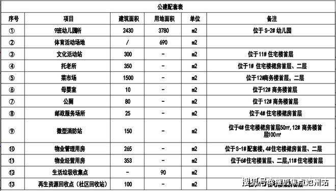 公建配套方面,规划有9班制幼儿园,体育活动场所,文化活动场所,托老所,菜市场等。