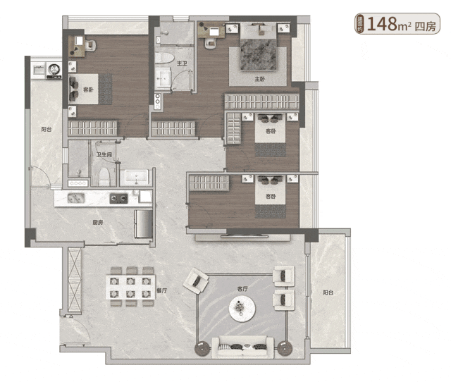 建面约148㎡四房来说吧,可谓是当前市场上最稀缺一批产品。