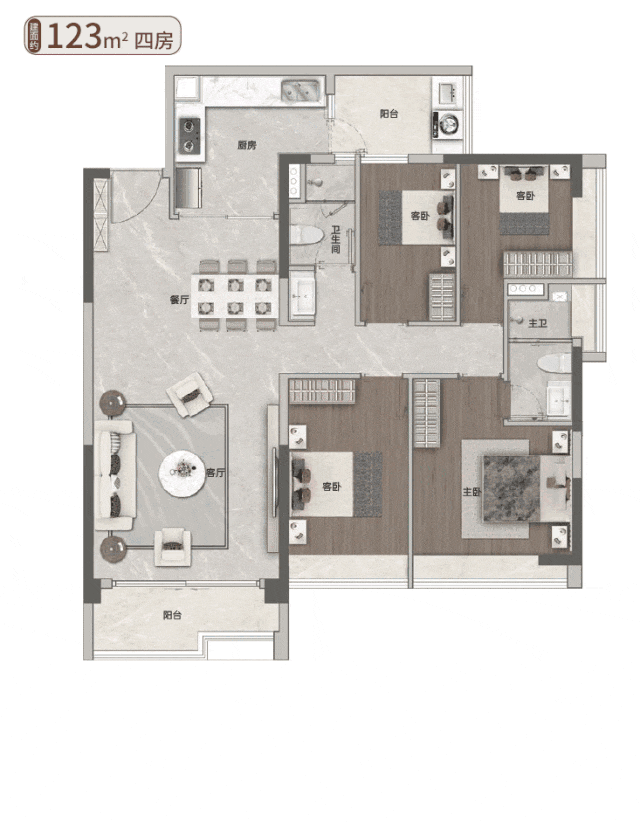 建面约123㎡的户型,则是目前越秀区新房唯一120㎡可以做四房的户型。