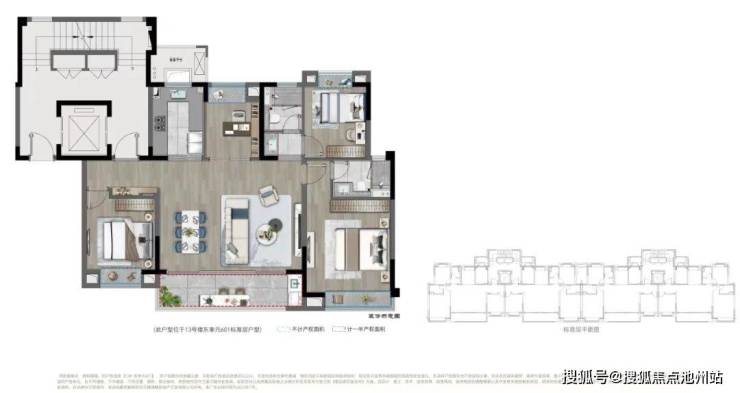 【上叠示意图 建面约145m² 4室2厅3卫】