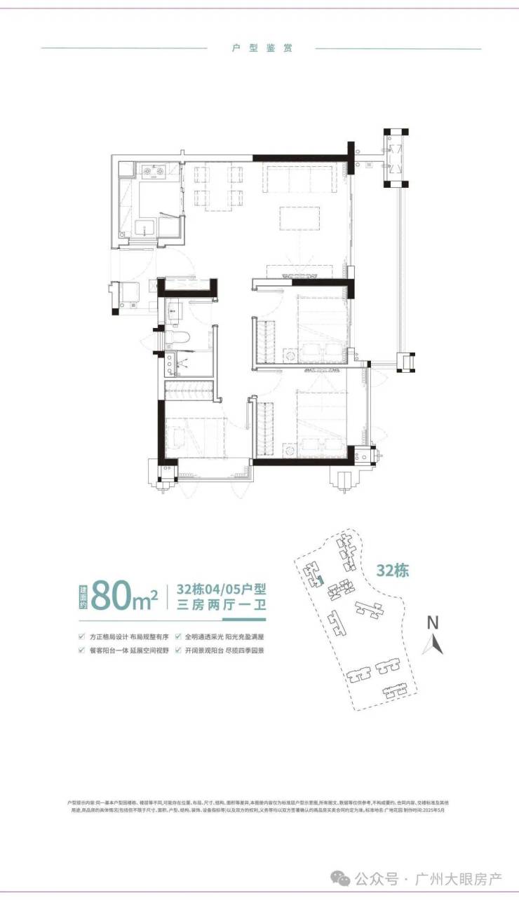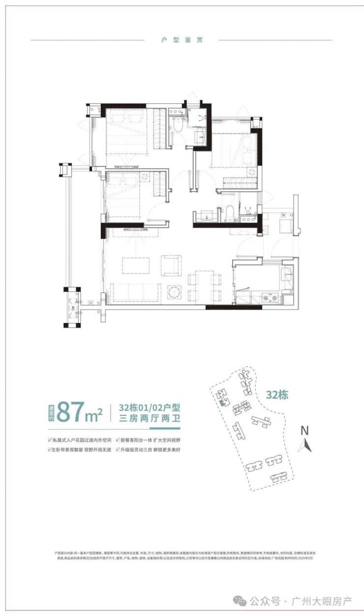 此次广地花园·观灏加推的新品32栋悦景楼座,面积段分别为86m²、96m²、100m²悦景三房,多面采景,三面望水,通透采光,充分利用户型的每一寸肌理,以有限的生活空间焕发更多生活灵感,打造全方位人性化居所。