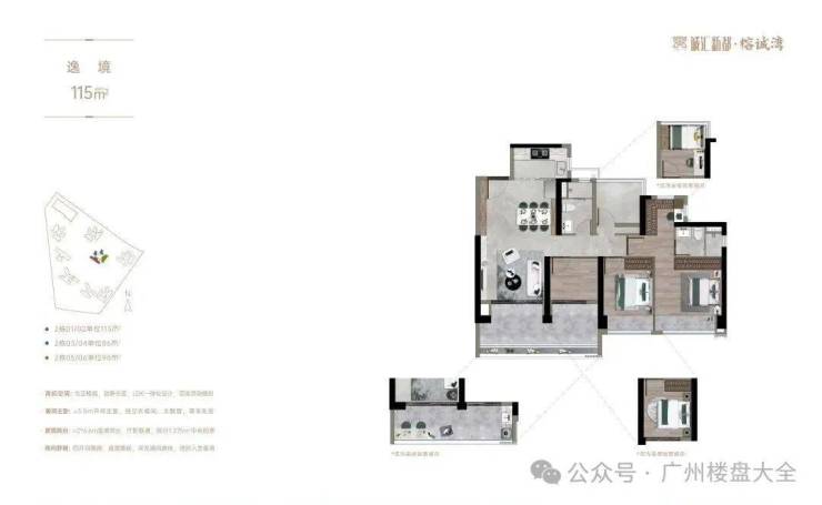 建面约97㎡,江园双景臻席,不仅能欣赏花地湾江面卓绝风光,还能俯瞰榕诚公园,以及GVL怡境国际匠心打造的“山林麓畔 隐翠森居”主题大师园林,LDK餐客厨一体设计,约6.5米宽境阳台。