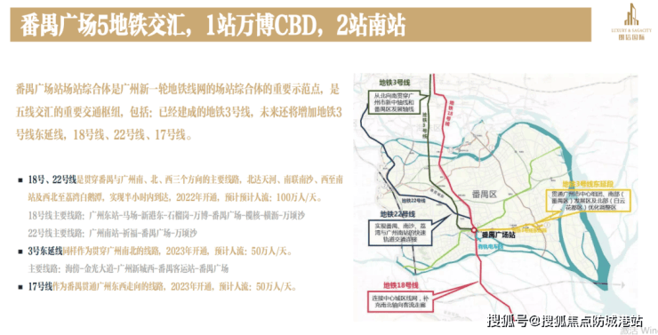 朗信国际坐拥五条地铁线路(17、18、22号线等),实现一站到达万博商圈、两站到广州南站、五站到天河区的目标。特别是广州首批高速地铁线的交汇,使得15分钟内即可覆盖30公里范围内的出行圈,极大地提高了出行效率。