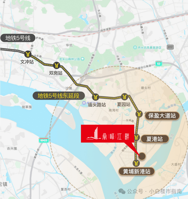5号线黄埔新港站约600米,约25分钟直达金融城、约40分钟直达珠江新城