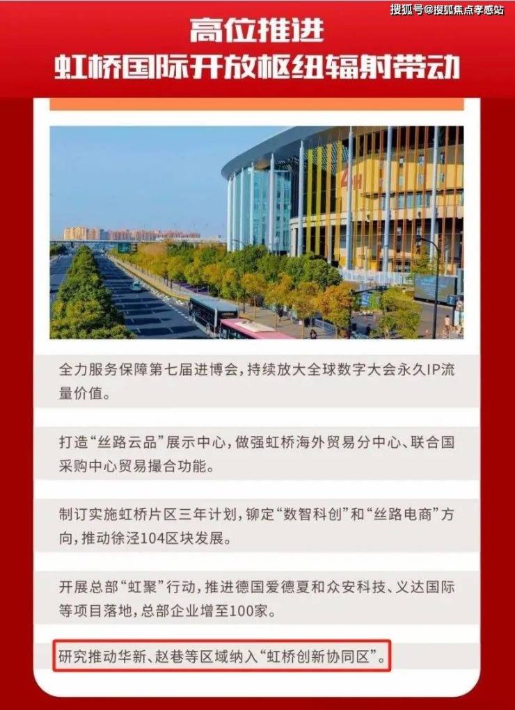 今年1月份,青浦区在2024工作安排中提到,要积极研究推动华新、赵巷等区域纳入“虹桥创新协同区!