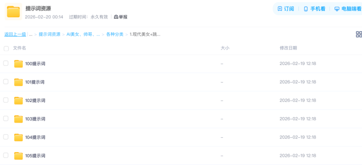 购买套餐后会获得一个网盘链接,其中包括上百套提示词与生成视频样例。