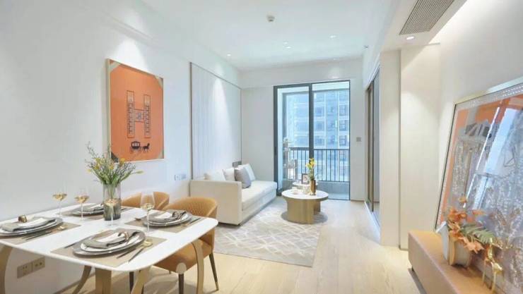 步入室内,你会发现空间的开阔感。这里约3.3米层高,比市面上常见楼盘高出30-50公分;与此同时,该户型将开间拉至3.6米,大大提升了居住空间的通透度。