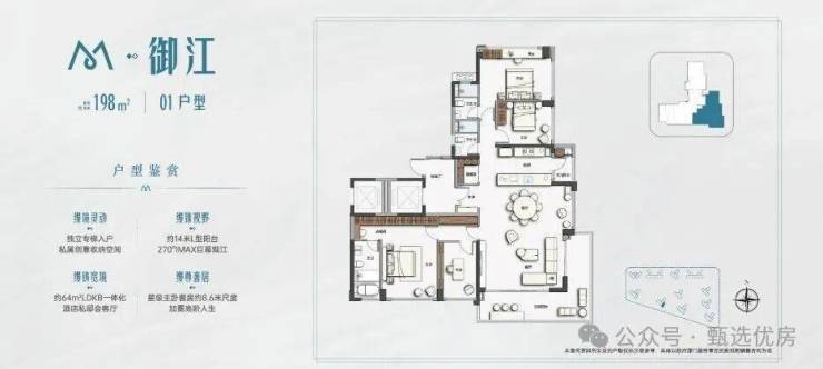 环抱式亲江布局 地势抬高 3 米实现户户朝南 江景环绕在家也坐拥 270° 无边界巨幕江景