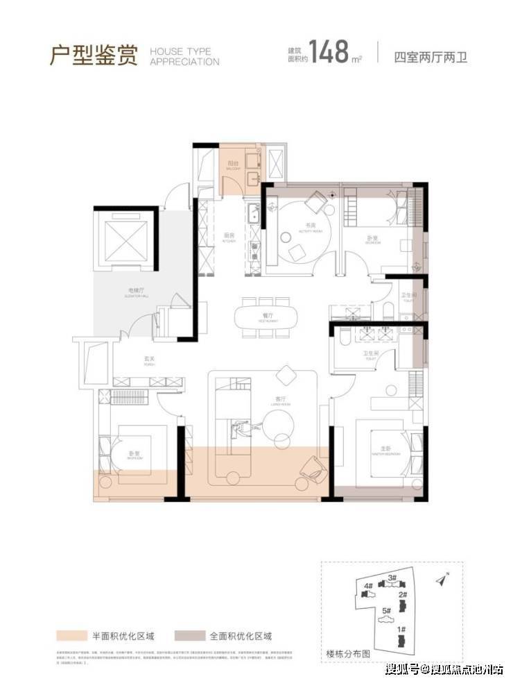 这里提一下,中寰悦府首开的1、2、5号楼中,143平户型所在的1、2号楼为偏东西朝向,5号楼未来建成后对2号楼也会有一些光照遮挡,所以,虽然5号楼的单价看上去高一点,但绝对值高的不多,172平户型的实际性价比反而更高,如果预算相对充足,可以优先选172平户型。