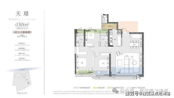 ①130㎡户型:三房两厅两卫,3号楼中间户,南北通透,三开间朝南;户型本身的布局还是比较方正的,并且有多处优化空间,厨房外还带一个生活阳台,可以用于后期晾晒,保留客厅阳台的纯粹性。但这一户型北面为连廊,加上客厅朝南设计,基本上没什么看江视野,主打优势是面积小,总价门槛低(项目内最低门槛)。