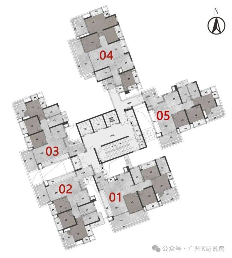 1-3栋为3梯5户,4-5栋为3梯4户,均为46-48层的超高层住宅,并且还配备一所9班幼儿园。