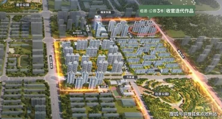 三、生态环境优美:紧邻约300亩昆仑公园、与约168亩北豆公园(规划中)一路之隔,为居民提供了一个宛如天然氧吧的生活环境。