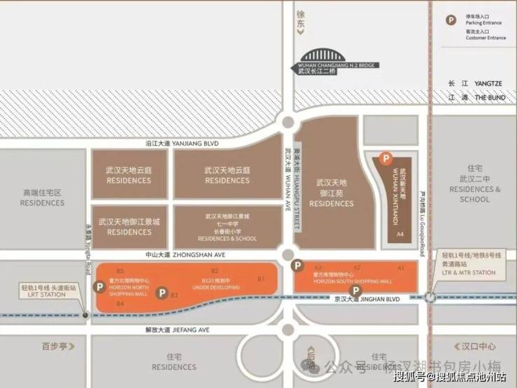 武汉天地总体规划以长江二桥为界分为A地块和B地块。如今项目已开发超20年,前期所有地块的住宅也售罄了。