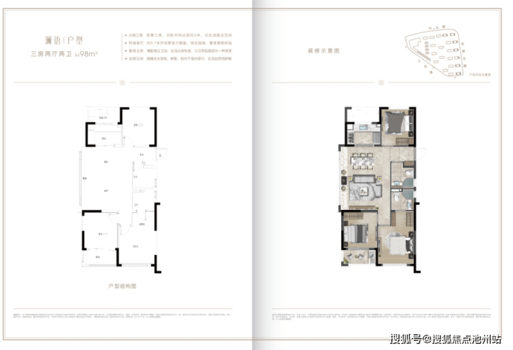约98㎡边套,拥有约5.7米宽的餐客一体化纵向大边厅。朝南次卧面宽也有约3米,为生活留足空间,户型和118方类似。