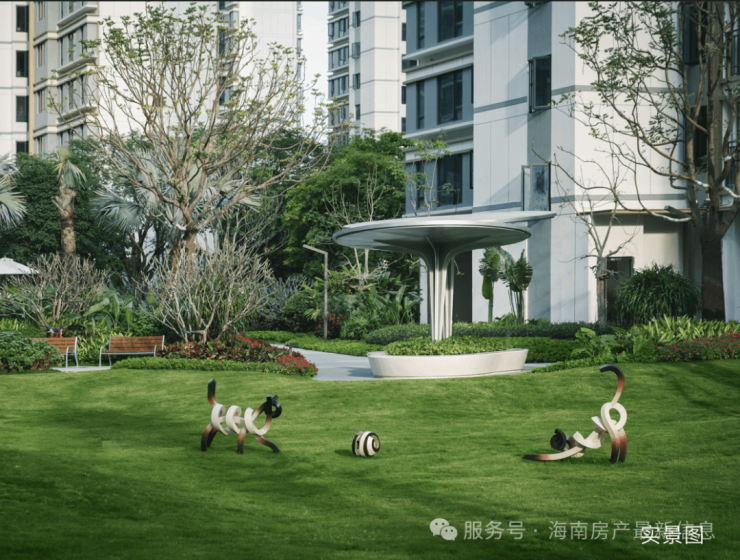 绿树成荫,潺潺流水,搭配特色雕塑及对景流水墙,打造轻松的艺术氛围,让业主舒适归家, 漫渡悠闲归家时光。