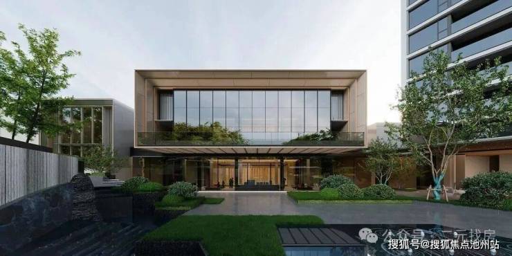 从效果图来看,项目采用公建化外立面,通体大面积干挂高端石材+铝板线条+玻璃幕墙,颇具现代感。