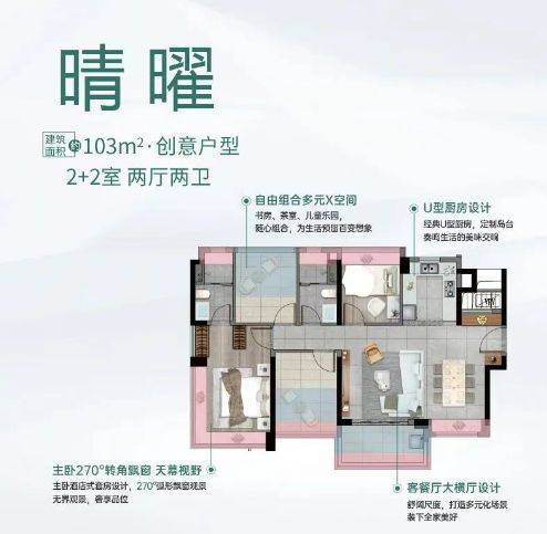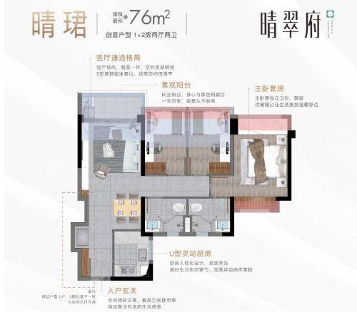 项目户型涵盖76-130平方米的三至四房宽景臻品,设计极致,例如76平方米即可实现三房两卫布局,89平方米可做四开间朝南,130平方米则五开间朝南,主卧更是配备了270度转角飘窗,极大提升了居住的舒适度和视觉享受。🌈广州卓越晴翠府❄️售楼处热线:400-856-3771【售楼处电话已认证】✨☃☃☃