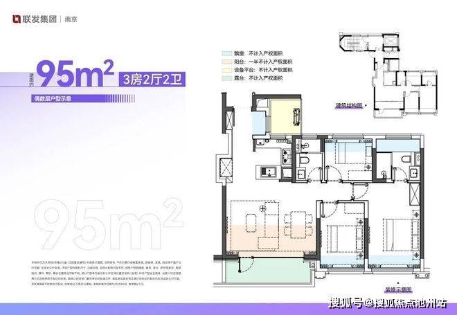 另一款关注度比较高的是建面约95㎡,做的是一款标准小三房,但是做了双卫,这一点非常实用。