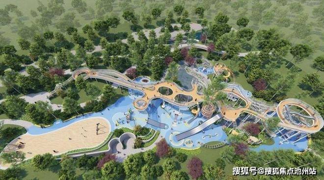由巨大游戏桥,连接10组各类型的滑筒滑梯、290㎡超大沙坑、24米双道滑索、直径6-7米的躺床和蹦床、各种类型的秋千、旋转游乐设备、攀爬设施、以及大型亲水互动池塘组成。
