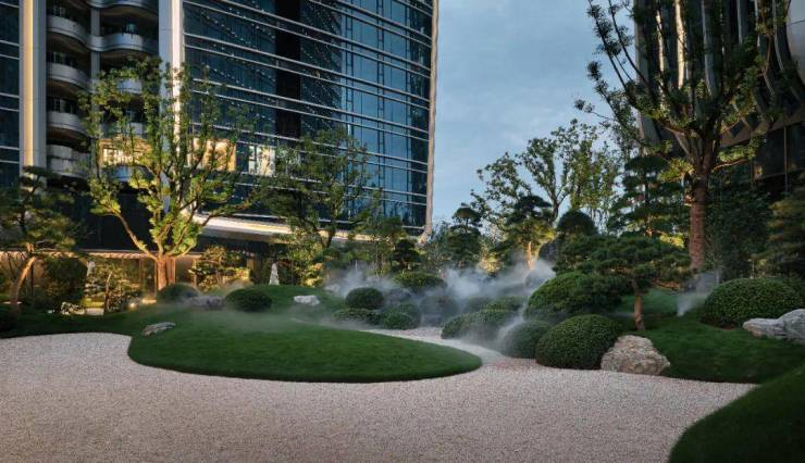 基于一线钱塘江景的优势,让景观与自然交互,以“潮”为核心元素去打造都会绿岛,同时依循地貌先天的河水资源,营构内外共水的滨水意趣,成为世界滨水生活的杭州表达; 构建一座既独立又融于地标丛林的滨水绿岛,一片漂浮于繁华都会的城市谧境。