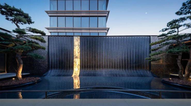 华盖与幕墙,由不锈钢饰面搭配铂金钻大理石筑成,这是南京首次大面积采用不锈钢饰面,足足约6000㎡!前庭地面,则由约8厘米厚的滨州青石材“经纬编织”而成。