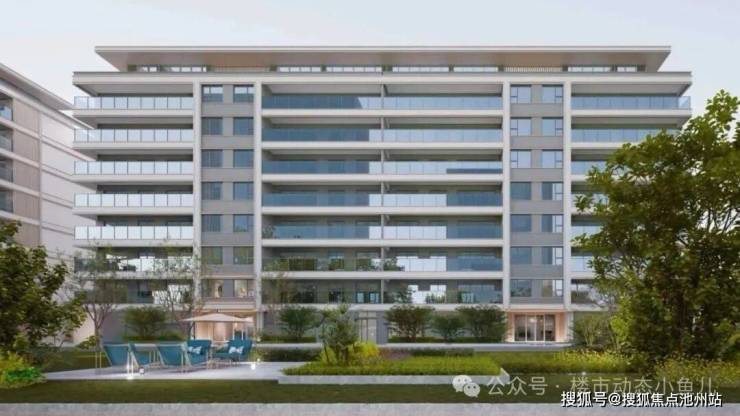 东吴序的建筑立面设计,延续现代简约美学风格。以米白色石材为主基调,阳台区域采用高透玻璃栏板与香槟色金属铝板线条组合,轻盈通透的设计让居住空间与外部环境自然交融。