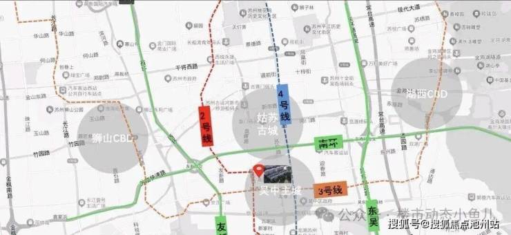 回到地段,东吴序精准落位这片老吴中的核心腹地,苏州双中轴线(宝带西路、东吴北路)交汇处,这里不仅是地理意义上的几何中心,更是苏州“老钱”心中30多年不变的圈层聚集地。