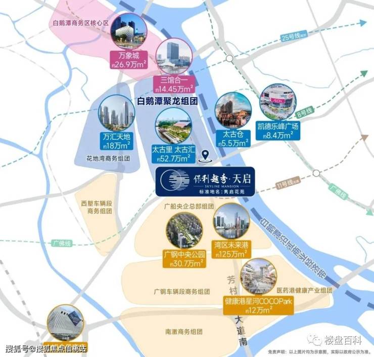 广州首条地铁环线11号线上盖,11号线共设立32个站点,19个换乘站,地铁不换乘,一线连全城,打造超级TOD都会环,横跨5大区一小时搞定!辐射2大枢纽(广州火车站、广州东站)及6大CBD(环市东、天河北、金融城、琶洲、白鹅潭、千灯湖),聚集海量人流,驱动澎湃消费力。