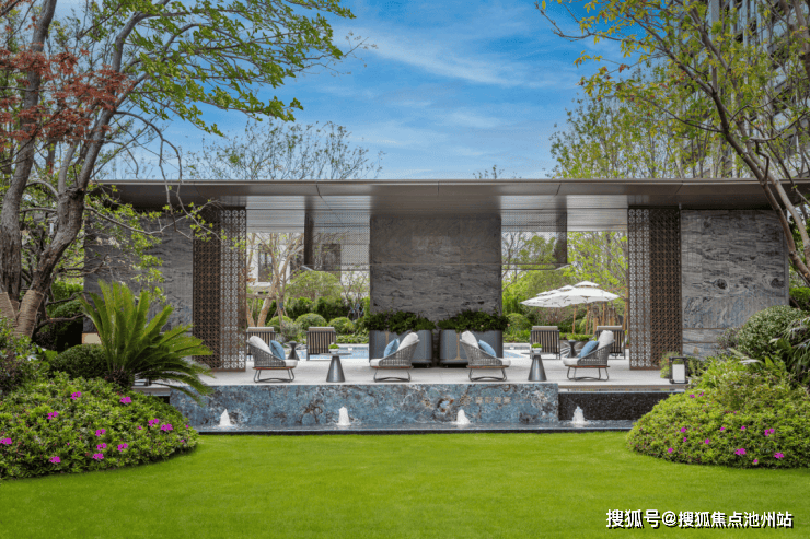 小区里还设置了不同的活动空间,阳光草坪、宅间花园、大小戏水池、疗愈花园、和用来会客的森氧会客厅等,或安静,或热闹,或休闲,漫步其中,度假的感觉扑面而来。