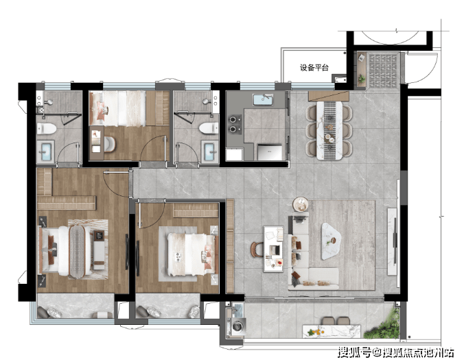 建面约109㎡起步双卫大三房,经开一步到位的“限量版”。